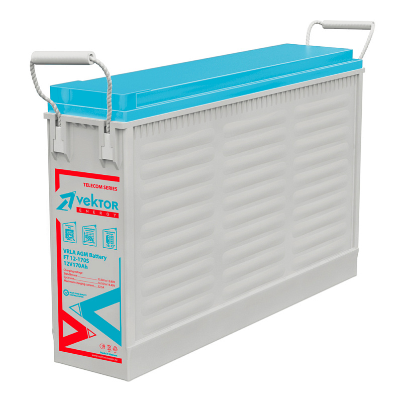 Фронтально-терминальный аккумулятор Vektor FT 12-170S (12 В, 175 Ач) выпускается по технологии AGM и подходит для установки в 19 и 23 дюймовую серверную стойку или шкаф. Он подходит для источников бесперебойного питания средней мощности, железнодорожного транспорта, телекоммуникационного оборудования, центров обработки данных и других ответственных узлов. Благодаря специальному Pb-Ca-Sn-Al сплаву Vektor FT 12-170S обладает повышенной плотностью энергии, устойчивости к коррозии, низким саморазрядом и длительным сроком службы — 15 лет. Vektor FT 12-170S подходит для эксплуатации в экстремальных температурных условиях: от -20°C до +60°C.