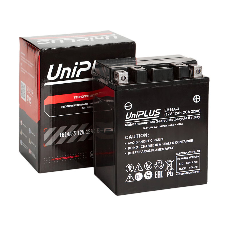 Мото аккумулятор UPLUS EB14A-3 (12V 12Ah) (YTX14AHL-BS)