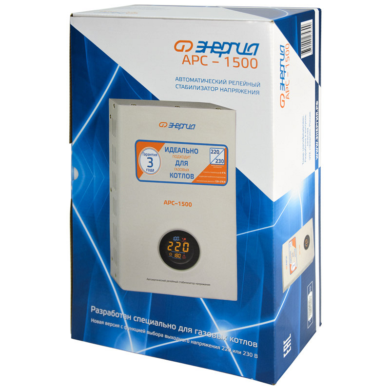 Стабилизатор напряжения Энергия АРС 1500 для котлов +/-4% и другие товары доступны в каталоге интернет-магазина UPS-Mag в Москве по самым доступным ценам. Ознакомьтесь с подробными характеристиками и описанием, а также отзывами о данном товаре, чтобы сделать правильный выбор и заказать товар онлайн.