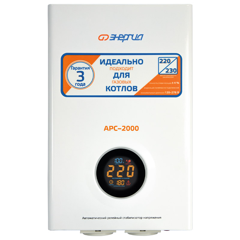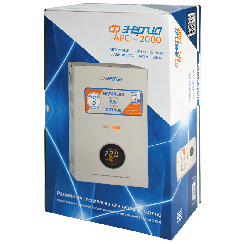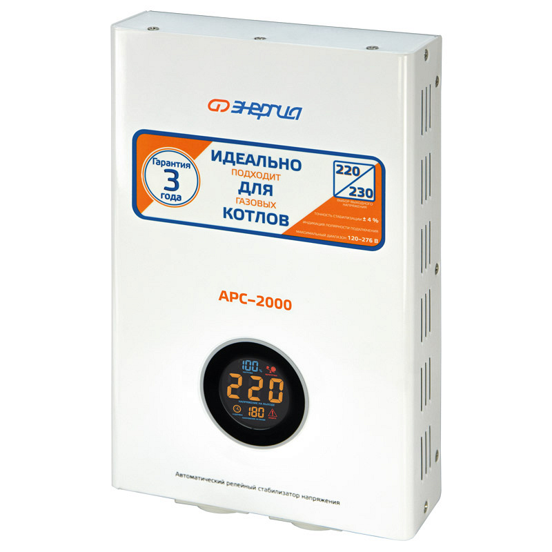 Стабилизатор напряжения Энергия АРС 2000 для котлов +/-4% и другие товары доступны в каталоге интернет-магазина UPS-Mag в Москве по самым доступным ценам. Ознакомьтесь с подробными характеристиками и описанием, а также отзывами о данном товаре, чтобы сделать правильный выбор и заказать товар онлайн.