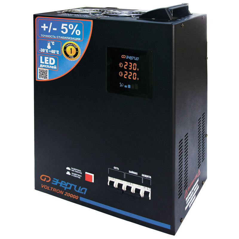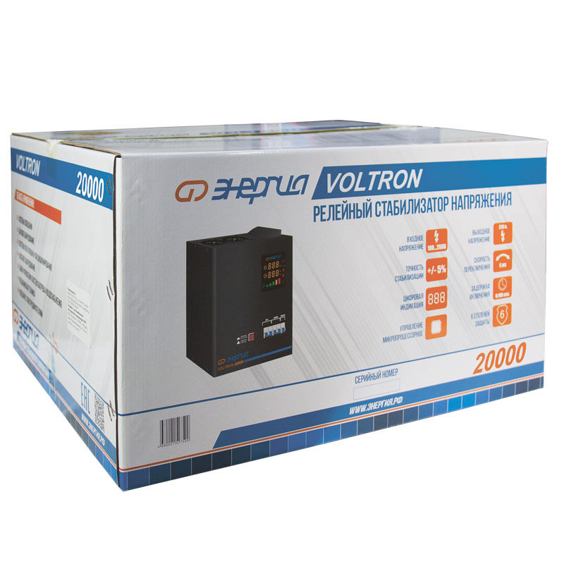 Стабилизатор напряжения Энергия VOLTRON 20000 5% и другие товары доступны в каталоге интернет-магазина UPS-Mag в Москве по самым доступным ценам. Ознакомьтесь с подробными характеристиками и описанием, а также отзывами о данном товаре, чтобы сделать правильный выбор и заказать товар онлайн.