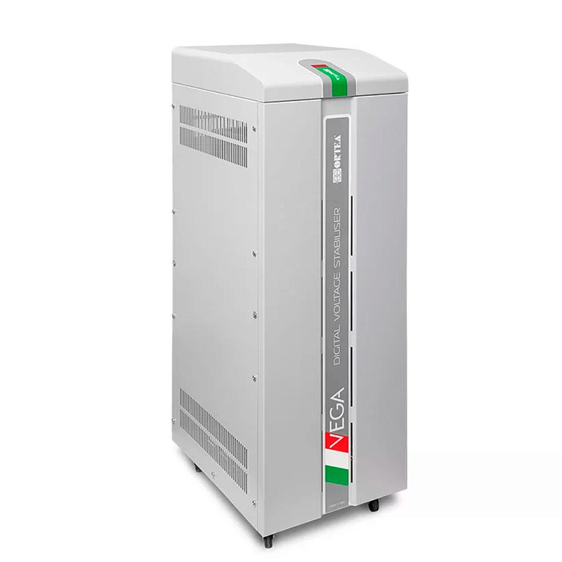 Ortea Vega 7-15/45 — это однофазный стабилизатор напряжения итальянского производства, он выпускается мощностью 7 кВА в напольном форм-факторе и подходит для защиты бытового оборудования, медицинской техники, систем отопления и ГВС, насосного и котельного оборудования, видео, аудио аппаратуры, ПК и другой домашней электроники. Принцип работы: электромеханический на графитовом ролике, что обеспечивает повышенную надёжность в сравнении со стандартными щёточными контактами и не подвержен выгоранию при работе с высокими токами, отсутствует искрение. Ortea Vega 7-15/45 снабжён функцией плавного пуска, по принципу вольтодобавки. Такое решение обеспечивает плавное выравнивание напряжения и минимизирует энергопотребление самого стабилизатора. Стабилизация производится с точностью 0.5%, что позволяет питать даже самое требовательное к качеству электропитания оборудование.