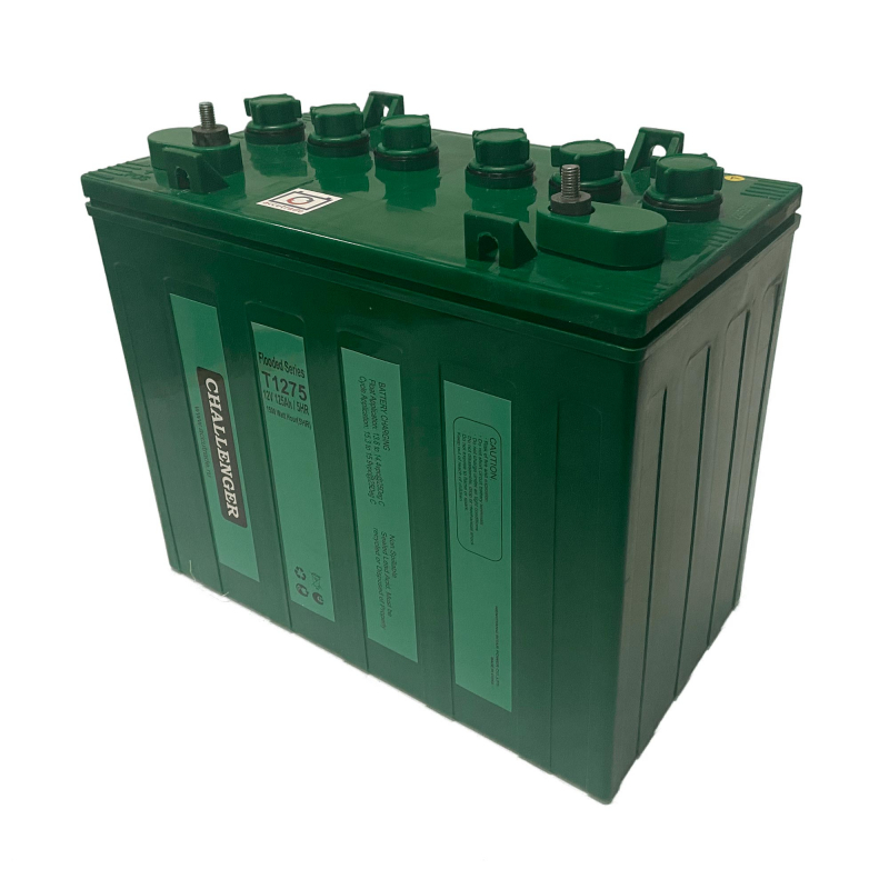 Свинцово-кислотный тяговый аккумулятор Challenger T-1275 разработан по технологии AGM напряжением 12 В и ёмкостью 140 Ач. Жидкий электролит удерживается неподвижно внутри мелкопористых стекловолоконных сепараторов. На крышке установлен VRLA клапан. Он отвечает за поддержание давления, необходимого для рекомбинации газов. За счёт этого обслуживание аккумулятора не требуется на протяжении всего срока службы. Срок службы составляет 1000 циклов при глубине разряда 80%. При своевременной и правильной подзарядке батарея прослужит дольше. Используйте автоматическое зарядное устройство, убедитесь, что оно полностью соответствует аккумулятору. Рекомендуется заряжать батарею после каждого использования. Благодаря своим характеристикам и стандартизированным размерам аккумулятор Challenger T-1275 подходит для большинства тяговой техники: гольфкаров, подъёмников, штабелёров, погрузчиков, поломоечных машин.