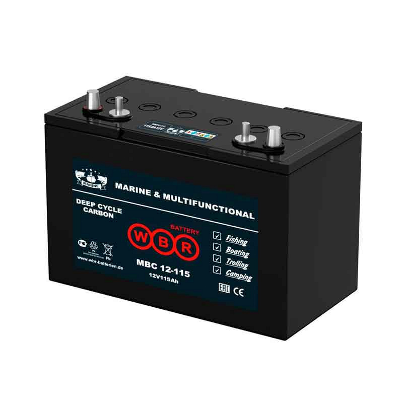Свинцово-кислотный тяговый аккумулятор WBR MBC 12-115 (ёмкость 118 Ач, напряжение 12 В) производятся с использованием технологии Carbon. Это обеспечивает высокую цикличность и продолжительный срок службы, до 10 лет при соблюдении правил эксплуатации. WBR MBC 12-115 разработан специально для использования эхолотов, электронасосов, приборов освещения, катерах, моторных лодках и другого оборудования. Доливать воду в аккумулятор не требуется. Корпус герметичен и выполнен из прочного и долговечного ABS пластика. Дата производства аккумулятора WBR MBC 12-115 указана на крышке в виде символьного кода.