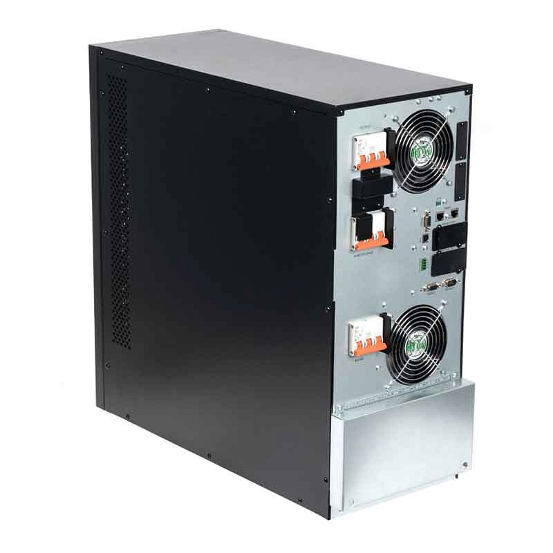 Трёхфазный online ИБП SKAT 120-3/3 подойдёт для обеспечения качественным током сетевого оборудования, учреждений, финансовой и транспортных сфер, вычислительных сетей, телекоммуникаций, управления технологическими процессами и других ответственных объектов. Со временем можно масштабировать мощность, подключая до 4 источников бесперебойного питания параллельно. SKAT 120-3/3 работает от внешних аккумуляторов и отслеживает их состояние. Заряд производится в 3 этапа при помощи интеллектуального ЗУ мощностью 40 А, такой подход существенно продливает срок службы батарей. При помощи ЖК-дисплея можно узнать о статусе ИБП, выбрать режим работы и настроить параметры. На задней панели предусмотрены порты для RS 232, USB, сухие контакты, EPO и SNMP.