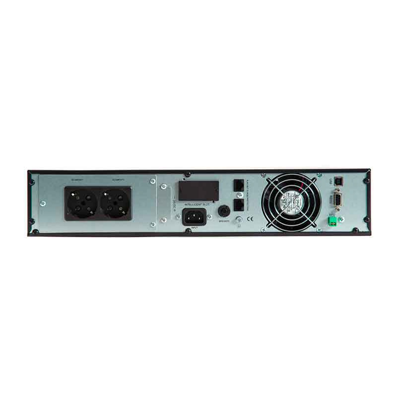 Однофазный источник бесперебойного питания SKAT 1500RACK производится мощностью 1.5 кВА / 1.35 кВт по технологии двойного преобразования(Online) высотой 2U. Online топология обеспечивает надёжную защиту оборудования от любых неполадок сети: скачки напряжения, помехи, отключение электричества и другие. SKAT 1500 RACK работает только от 3 внешних аккумуляторных батарей ёмкостью от 40-120 Ач каждый (внутри ИБП аккумуляторов нет). При отсутствии напряжения сети можно запустить оборудование от них: ИБП поддерживает функцию «холодного» старта. Переключение на работу от АКБ происходит моментально, при этом сохраняется высокое качество подаваемого тока. Для заряда внешних аккумуляторов в ИБП установлено зарядное устройство мощностью 6А. На задней панели однофазного ИБП расположены евророзетки. Это позволяет подключать питаемое оборудование напрямую к ИБП. Универсальный форм фактор позволяет установить источник бесперебойного питания на пол, в стандартную стойку или шкаф: все необходимые монтажные элементы входят в комплект поставки.