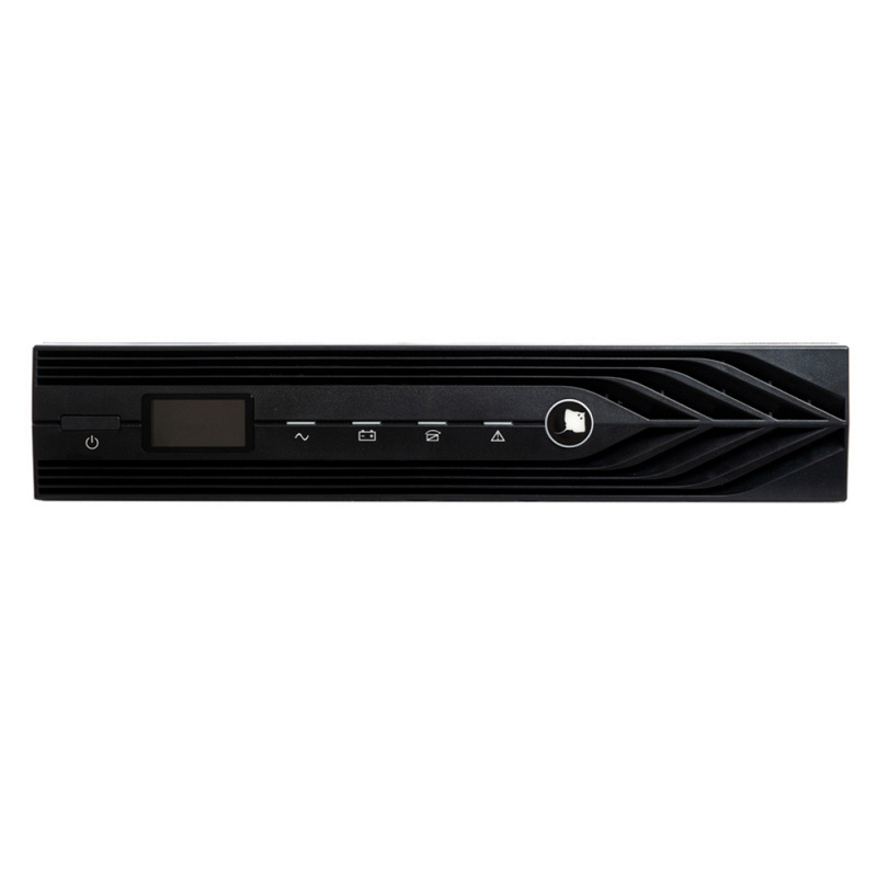 На передней панели SKAT 1500-RACK-ON-E предусмотрен ЖК-дисплей и светодиодная индикация. Они показывают основную информацию о статусе, режиме работы и состоянии батарей. При возникновении ошибки или аварии срабатывает звуковая сигнализация. Управлять и настраивать однофазный ИБП можно напрямую через кнопки на корпусе, либо при помощи компьютера, для этого необходимо подключить дополнительное оборудование в соответствующий слот.