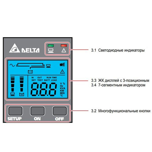 Источник Delta N-Series 3 кВА имеет встроенные аккумуляторные батареи.