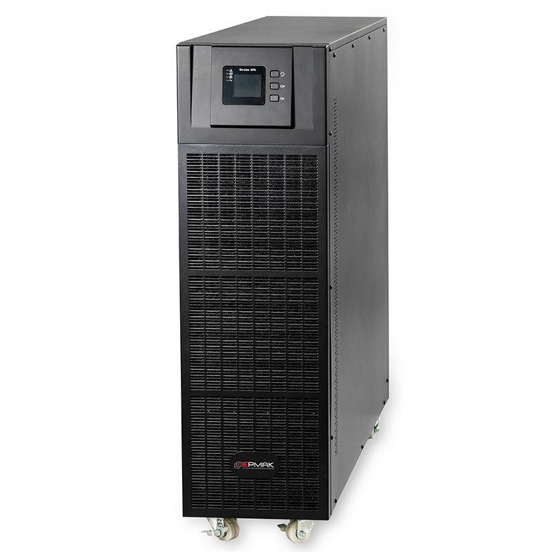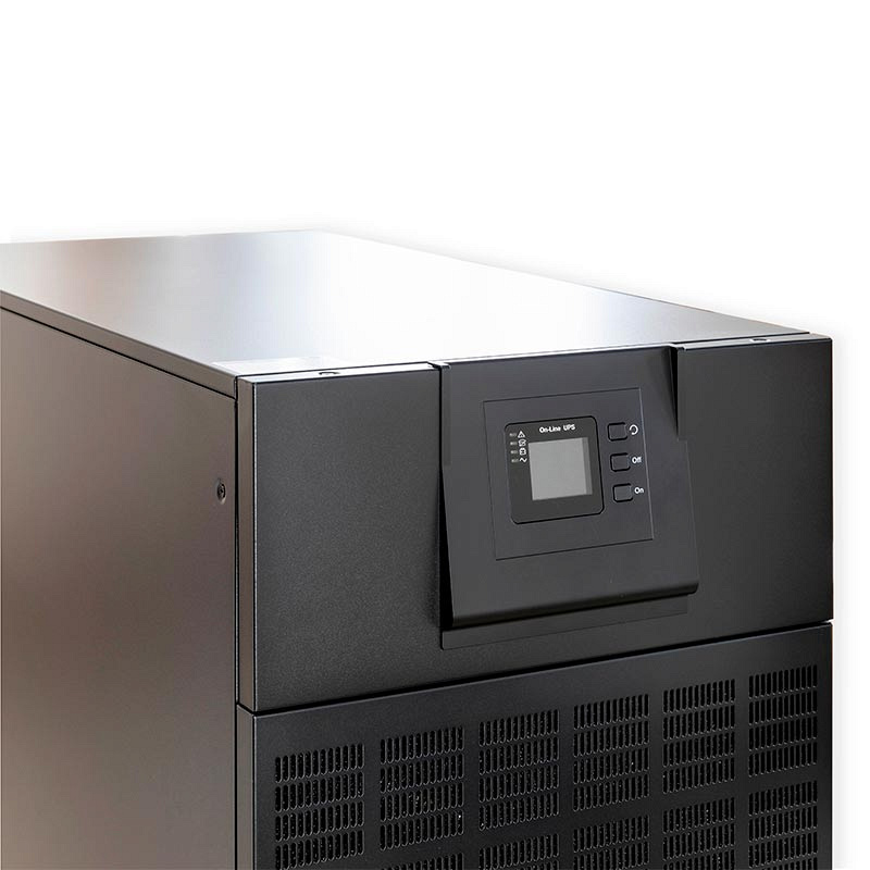Российский однофазный Онлайн ИБП ЕРМАК 380-380.40-Н мощностью 40 кВА \ 40 кВт — это высокая мощность в компактном корпусе. Напольный форм-фактор (Tower) позволяет монтировать источник бесперебойного питания вертикально, он не занимает много места. Топология двойного преобразования (Online) обеспечивает наилучшую защиту подключаемого оборудования от любых неполадок электросети. Однофазный ИБП ЕРМАК 380-380.40-Н совместим с дизельными генераторам, поддерживает «горячую» замену аккумуляторов и функцию «холодный» старт. Источник бесперебойного питания работает от внутренних батарей: 40 шт. Встроенное ЗУ мощностью 20 А отслеживает состояние АКБ и сигнализирует, когда требуется замена. На задней панели расположена клеммная колодка и коммуникационные порты: RS232, USB, EPO, SNMP, «сухие» контакты. ИБП ЕРМАК 380-380.40-Н производит самодиагностику во время запуска и автоматически регулирует скорость работы вентилятора охлаждения.