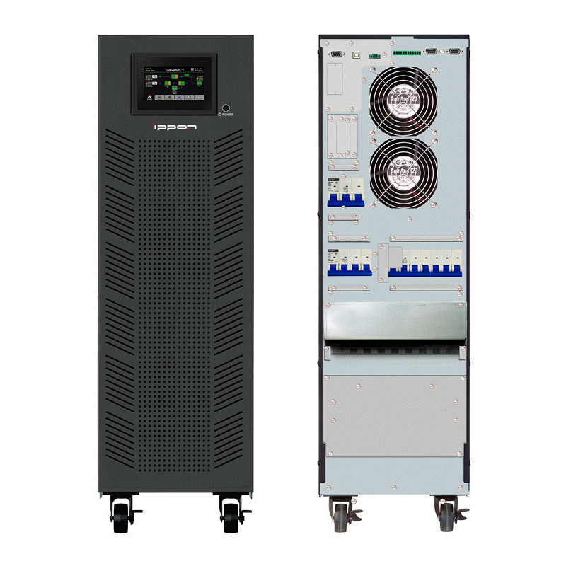 Источник бесперебойного питания Ippon Innova RT 33 20K Tower производится в напольном исполнении по технологии двойного преобразования энергии (технология “online”). Трёхфазный ИБП мощностью 20 кВА \ 20 кВт на выходе выдаёт чистую синусоиду и подходит для медицинского оборудования, ЦОД и производства. В Ippon Innova RT 33 20K Tower установлено сорок свинцово кислотных аккумуляторов, ёмкостью по 9 Ач. Можно существенно увеличить время автономной работы, подключив до 4 внешних батарейных модулей. На передней панели для удобного управления предусмотрен ЖК-дисплей. На нём отображается статус ИБП, ошибки и состояние аккумуляторов. Кнопки позволяют задать параметры работы источника бесперебойного питания. Расширить функционал Ippon Innova RT 33 20K Tower можно при помощи установки дополнительных интерфейсов, подробнее во вкладке «Аксессуары». Источник обеспечивает максимальный уровень защиты подключенного оборудования.