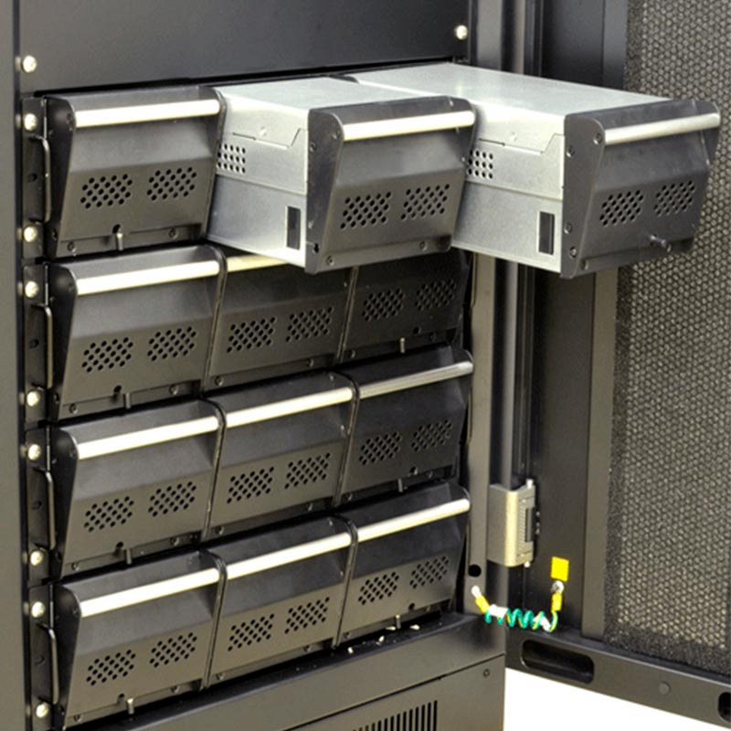 Внутри модульного ИБП СИП380А250МД20.9-33/15 установлено 10 силовых модулей по 20 кВт каждый. Это позволяет со временем масштабировать систему, наращивать мощности. Такой вариант отлично подойдёт для развивающегося производства, строительных и инфраструктурных объектов. Удобный форм-фактор повзоляет расположить мощный трёхфазный источник бесперебойного питания в габаритах стандартной телекоммуникационной стойки 19 дюймов. Модули включаются в работу постепенно, по мере загруженности электросети.