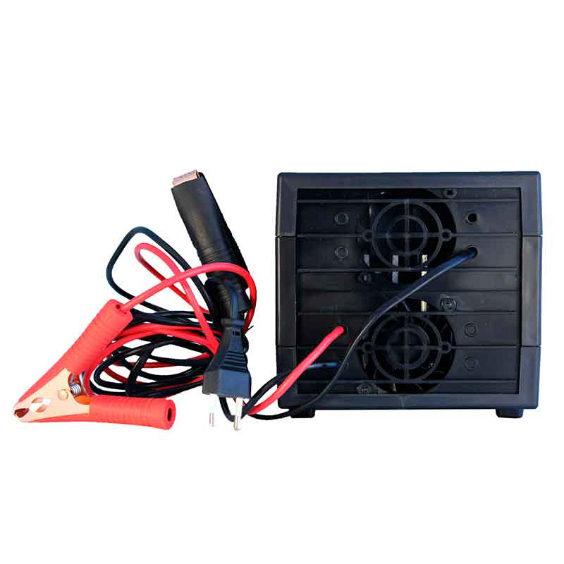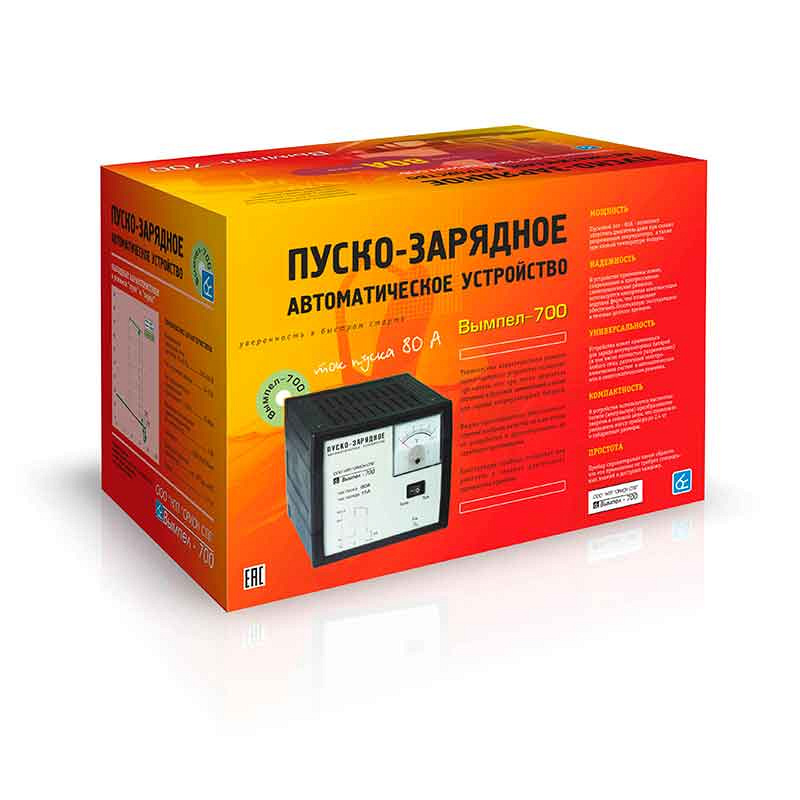 Автоматическое зарядное устройство Вымпел-700 предназначено для зарядки 12 В автомобильных аккумуляторов любой ёмкости более 45 Ач. ЗУ использует алгоритм заряда по принципу импульсного отключения и снабжено защитой от короткого замыкания и перегрева. На передней панели расположен стрелочный вольтметр для отслеживания состояния аккумуляторов. Регулировка тока и напряжения на Вымпел-700 отсутствует. Во избежание перегрева внутри зарядного устройства установлено активное охлаждение в виде микровентилятора. Более подробную информацию о схеме подключения, режимах эксплуатации и характеристиках можно получить во вкладке «Документы».