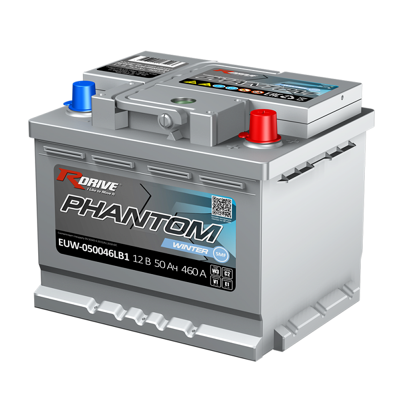 Автомобильный аккумулятор RDrive PHANTOM WINTER SMF EUW-050046LB1 производится напряжением 12 В, ёмкостью 50 Ач, током холодной прокрутки = 460 А для европейских автомобилей, эксплуатирующихся в условиях холодного климата северных регионов Сибири и Дальнего Востока. Клеммы стандартные, полярность обратная (- +). RDrive PHANTOM WINTER SMF EUW-050046LB1 в сравнении со стандартными свинцово-кислотными аккумуляторами обладает повышенной производительностью и устойчивостью к вибрациям, что существенно продлевает срок службы АКБ. Батареи серии PHANTOM модификации Winter разработаны для суровых климатических условий. Ключевая особенность батареи — повышенный пусковой ток и усиленная конструкция.