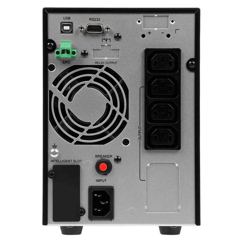 Однофазный онлайн ИБП Ippon Innova TB 2000 выпускается мощностью 2000 ВА \ 1800 Вт в напольном форм-факторе. Источник бесперебойного подходит для снабжения качественным электропитанием такого оборудования как персональные компьютеры, периферийное оборудование, серверы высокой мощности, графические станции и сетевое оборудование. Ippon Innova TB 2000 защищает потребителей от коротких замыканий, перегрузок, высоковольтных выьросов и других неполадок сети. ЖК-дисплей отображает основную информацию и позволяет настроить режимы работы. Звуковые оповещения сигнализируют о возможных проблемах ИБП, его состоянии и настраиваются пользователем. На задней панели для расширения функционала источника бесперебойного питания расположены следующие порты: RS-232, USB, EPO и SNMP. Рядом расположены выводы, они выполнены в формате IEC-розеток