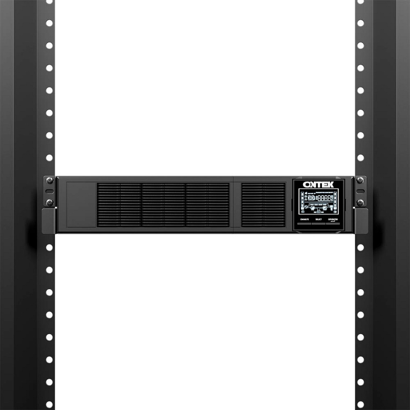 Однофазный online ИБП Ontek SM RM 3 3000 ВА / 2700 Вт (PF = 0.9) производится в универсальном форм-факторе (Rack-Tower). Это позволяет монтировать источник бесперебойного питания в стандартную 19” стойку или вертикально при помощи специальных ножек (включены в комплект поставки). Встроенные аккумуляторы поддерживают функцию горячей замены, это удешевляет эксплуатацию оборудования, так как бесперебойник не нужно отключать на время обслуживания батарей. Регулировать параметры и режимы работы Ontek SM RM 3 можно как с помощью ЖК-дисплея, так и благодаря специализированному программному обеспечению. В случае подачи качественного тока питающей электросети ИБП переходит в ЭКО-режим и включается при нарушении сигнала. Совместимость с генератором существенно повышает время автономной работы и отказоустойчивость системы.