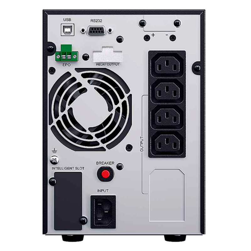 Напольное исполнение позволяет разместить источник бесперебойного питания даже в небольшом помещении. У ИБП нет встроенных АКБ, но к нему можно подключить четыре (48В=4х12В) свинцово-кислотных аккумулятора. Максимальный зарядный ток от внутреннего ЗУ составляет 8 А. Выводы у Эксперт Плюс-2000 выполнены в виде IEC и Евро-розеток. На передней панели расположен ЖК-дисплей. С его помощью можно настраивать параметры и отслеживать состояние ИБП. К Эксперт Плюс-2000 можно подключить следующие интерфейсы: USB/RS-232/SNMP Slot/EPO.