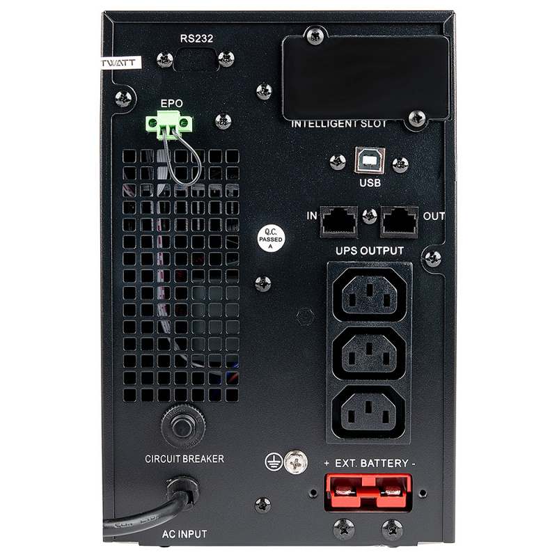 Напольный однофазный онлайн ИБП Smartwatt UPS MASTER IEC 1kVA L мощностью 1000 ВА / 900 Вт это компактное решение для защиты офисной техники, сетевого оборудования и систем безопасности от сбоев в работе электросети. Источник бесперебойного питания защищает потребителей от любых неполадок: короткие замыкания, скачки напряжения, помехи и полное отключение тока. Однофазный ИБП Smartwatt UPS MASTER IEC 1kVA L работает от внешних свинцово-кислотных аккумуляторов, время автономии при необходиости можно нарастить, подключив дополнительные ВБМ или генератор. Для удобства управления и отслеживания состояния источника бесперебойного питания предусмотрен LCD-дисплей. На задней панели Smartwatt UPS MASTER IEC 1kVA L расположены IEC-розетки и порты для подключения дополнительных интерфейсов: RS232, EPO, RJ 11/45, порт USB, SNMP.