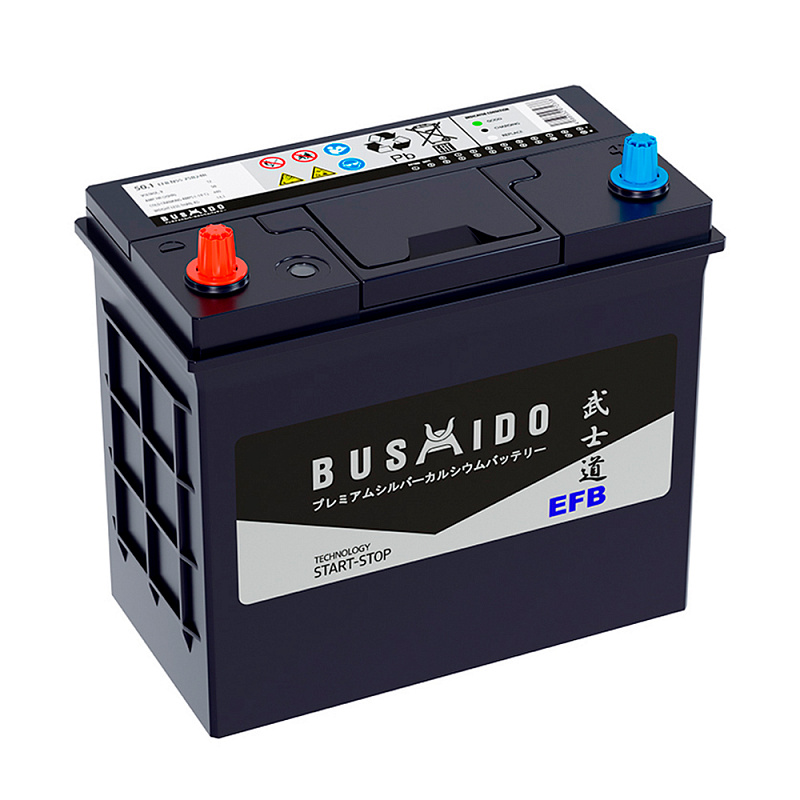Автомобильный аккумулятор Bushido EFB 50 пр (75B24R, HO) выпускается напряжением 12 В, ёмкостью 50 Ач, током холодной прокрутки 480 А и прямой полярностью для азиатских городских автомобилей по технологии EFB. АКБ для городских авто обладает улучшенными характеристиками в сравнении со стандартными моделями: повышенная устойчивость к вибрации и циклическим нагрузкам, увеличенный срок службы, подходит для эксплуатации в суровых климатических условиях. Bushido EFB 50 пр (75B24R, HO) подходит для авто с системой Start-Stop: выключение двигателя при частых остановках и моментальное зажигание при нажатии педали газа. Это позволяет экономить топливо и ресурс двигателя.