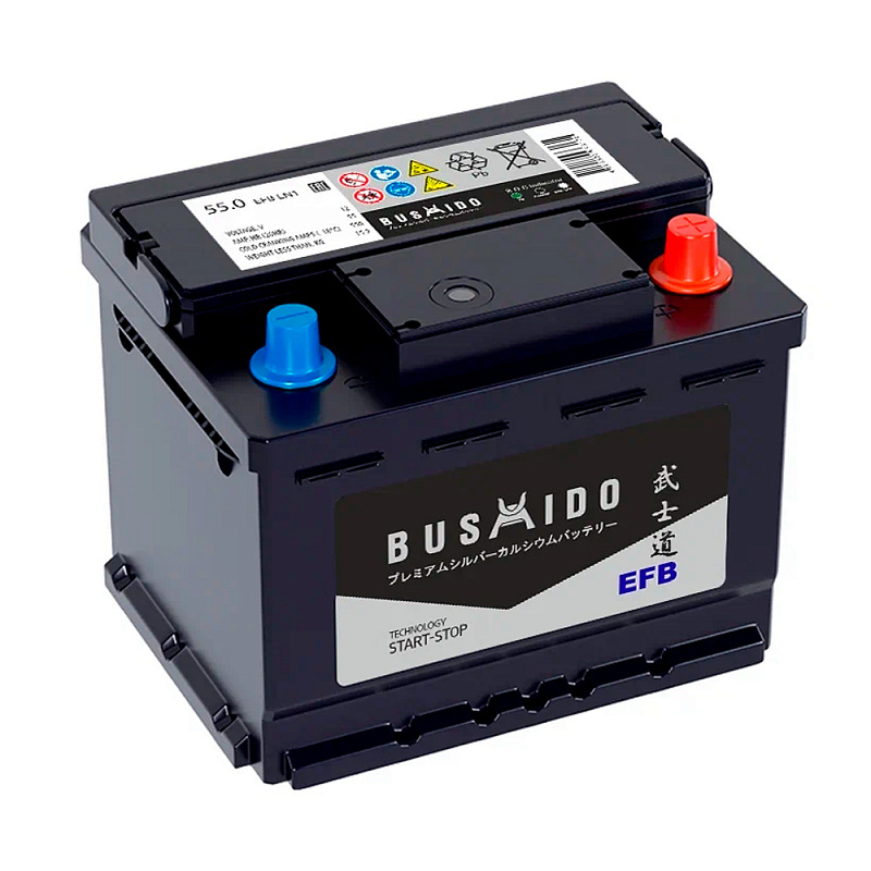 Авто аккумулятор BUSHIDO EFB 55 обр (L1.0, HO) (12V / 55Ah / 550CCA)