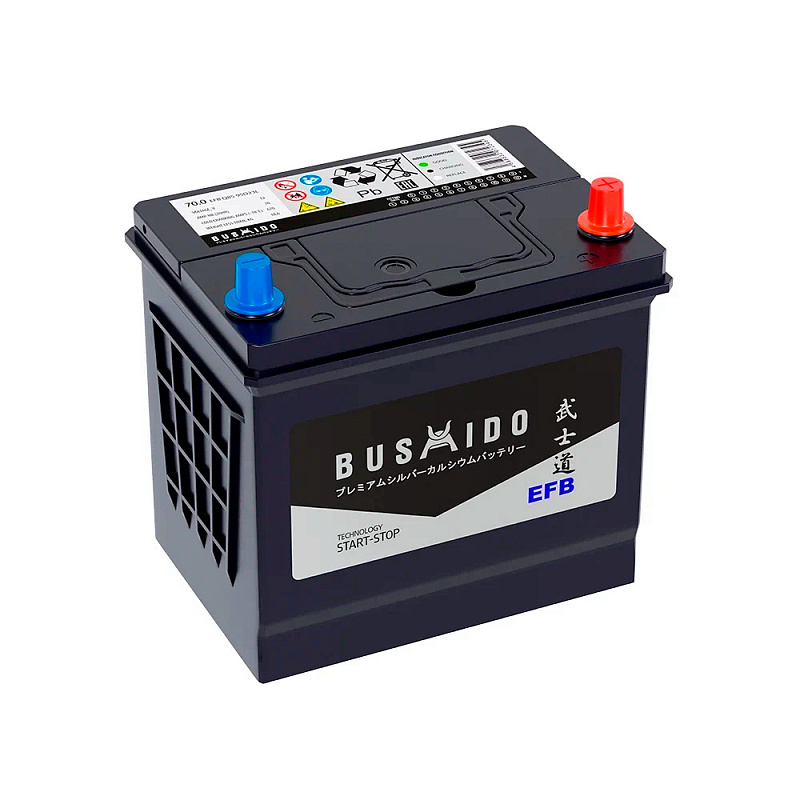 Автомобильный аккумулятор Bushido EFB 70 обр (95D23L, CA) выпускается напряжением 12 В, ёмкостью 70 Ач, током холодной прокрутки 670 А и обратной полярностью для азиатских городских автомобилей по технологии EFB. АКБ для городских авто обладает улучшенными характеристиками в сравнении со стандартными моделями: повышенная устойчивость к вибрации и циклическим нагрузкам, увеличенный срок службы, подходит для эксплуатации в суровых климатических условиях. Bushido EFB 70 обр (95D23L, CA) подходит для авто с системой Start-Stop: выключение двигателя при частых остановках и моментальное зажигание при нажатии педали газа. Это позволяет экономить топливо и ресурс двигателя.