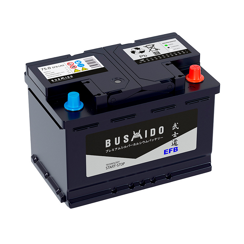 Авто аккумулятор BUSHIDO EFB 75 обр (L3.0, HO) (12V / 75Ah / 800CCA)