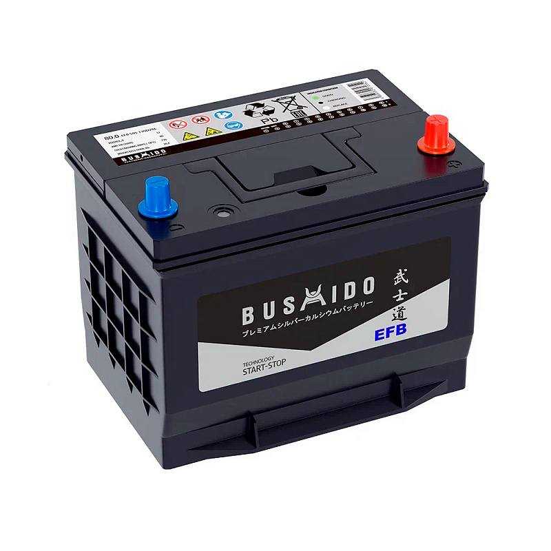 Авто аккумулятор BUSHIDO EFB 80 обр (130D26L, CA) (12V / 80Ah / 730CCA)