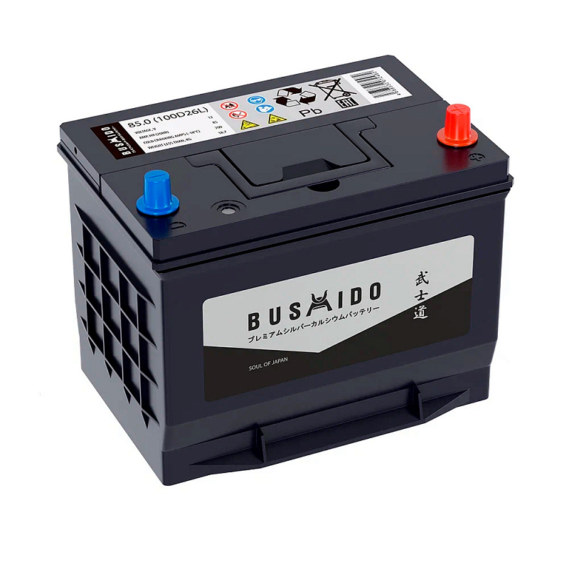 Автомобильный аккумулятор Bushido SJ 85 обр (100D26L, CA) предназначен для эксплуатации в легковых автомобилях. Использование технологии Ca/Ca обеспечивает долгую и стабильную работу АКБ, предотвращает осыпание активной массы и высокие стартерные токи. Ударопрочный корпус Bushido SJ 85 обр (100D26L, CA) надёжно герметизирован и внутри поддерживается давление, обеспечивающее рекомбинацию газов. Батарея изготавливается с учётом всех особенностей азиатских автомобилей.