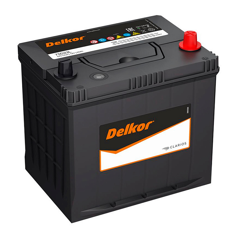 Автомобильный аккумулятор DELKOR 65 обр (75D23L) (12 В, 65 Ач, 570 А, полярность обратная) производится в Южной Корее по технологии Ca/Ca для легковых азиатских автомобилей с поддержкой Start-Stop. Эта система автоматически отключает двигатель при кратковременных остановках и моментально запускает его при нажатии педали газа. Такое решение существенно экономит топливо и снижает количество вредных выбросов, обычно используется для городских автомобилей, где часто приходится останавливаться на светофорах. При производстве DELKOR 65 обр (75D23L) используется только первичный свинец, легированный кальцием, оловом и серебром. Это существенно улучшает устойчивость аккумулятора к коррозии и снижает саморазряд.