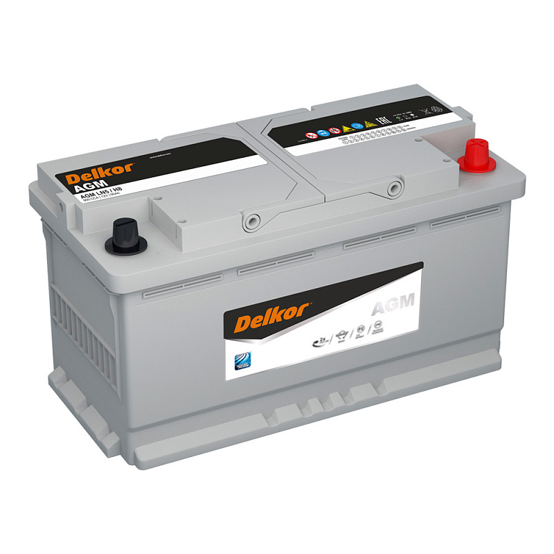 Автомобильный аккумулятор DELKOR AGM 95 обр (LN5.0) (12 В, 95 Ач, 900 А, полярность обратная) производится в Южной Корее по технологии AGM (Absorbent Glass Mat) для легковых европейских автомобилей с поддержкой Start-Stop. Эта система автоматически отключает двигатель при кратковременных остановках и моментально запускает его при нажатии педали газа. Такое решение существенно экономит топливо и снижает количество вредных выбросов, обычно используется для городских автомобилей, где часто приходится останавливаться на светофорах. При производстве DELKOR AGM 95 обр (LN5.0) используется только первичный свинец, легированный кальцием, оловом и серебром. Это существенно улучшает устойчивость аккумулятора к коррозии и снижает саморазряд.