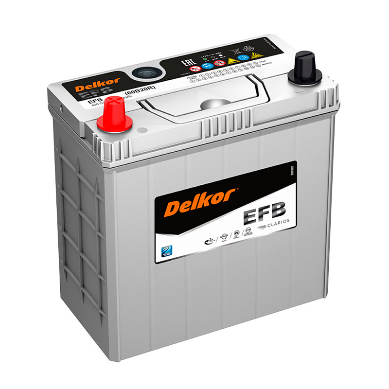 Автомобильный аккумулятор DELKOR EFB 40 пр (60B20R) (12 В, 40 Ач, 400 А, полярность прямая) производится в Южной Корее по технологии EFB (Enhanced Flooded Battery) для легковых азиатских автомобилей с поддержкой Start-Stop. Эта система автоматически отключает двигатель при кратковременных остановках и моментально запускает его при нажатии педали газа. Такое решение существенно экономит топливо и снижает количество вредных выбросов, обычно используется для городских автомобилей, где часто приходится останавливаться на светофорах. При производстве DELKOR EFB 40 пр (60B20R) используется только первичный свинец, легированный кальцием, оловом и серебром. Это существенно улучшает устойчивость аккумулятора к коррозии и снижает саморазряд.