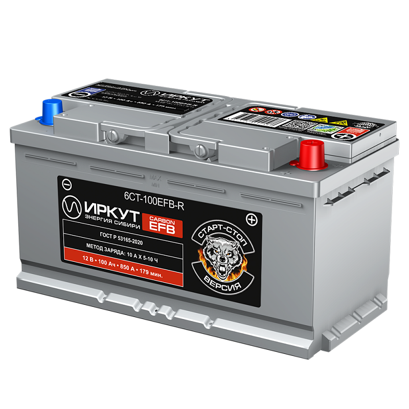 Автомобильный аккумулятор ИРКУТ 6CT-100EFB-R (EFB-L5EU) производится по технологии EFB (Enhanced Flooded Battery) — в активную массу электродов включена карбоновая добавка. Такое решение положительно сказывается на производительности АКБ, повышает скорость приёма заряда и продлевает срок службы батареи. Существенно улучшается устойчивость к глубоким разрядам. Аккумулятор разработан для европейских и азиатских автомобилей с высоким энергопотреблением, оснащённых системами Start-Stop / Idle-Stop / ISS.