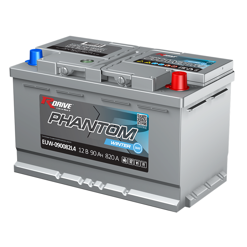 Автомобильный аккумулятор RDrive PHANTOM WINTER SMF EUW-090082L4 производится напряжением 12 В, ёмкостью 90 Ач, током холодной прокрутки = 820 А для европейских автомобилей, эксплуатирующихся в условиях холодного климата северных регионов Сибири и Дальнего Востока. Клеммы стандартные, полярность обратная (- +). RDrive PHANTOM WINTER SMF EUW-090082L4 в сравнении со стандартными свинцово-кислотными аккумуляторами обладает повышенной производительностью и устойчивостью к вибрациям, что существенно продлевает срок службы АКБ. Батареи серии PHANTOM модификации Winter разработаны для суровых климатических условий. Ключевая особенность батареи — повышенный пусковой ток и усиленная конструкция.