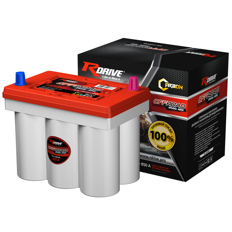Автомобильный аккумулятор двойного назначения RDrive OFFROAD SPIRAL AGM JPS-110D26L производится напряжением 12 В, ёмкостью 55 Ач, током холодной прокрутки = 850 А, он подходит для мототехники и внедорожных автомобилей. Клеммы T1, полярность универсальная. RDrive OFFROAD SPIRAL AGM JPS-110D26L в сравнении со стандартными свинцово-кислотными аккумуляторами обладает повышенной производительностью и устойчивостью к вибрациям (до 15 раз лучше), что продлевает срок службы АКБ втрое. Батареи серии OFFROAD SPIRAL разработаны для разрядов высокими токами. RDrive OFFROAD SPIRAL AGM JPS-110D26L в сравнении со стандартными свинцово-кислотными АКБ обладает вдвое большим током холодной прокрутки, высокой устойчивостью к глубоким разрядам и вдвое меньшим внутренним сопротивлением.