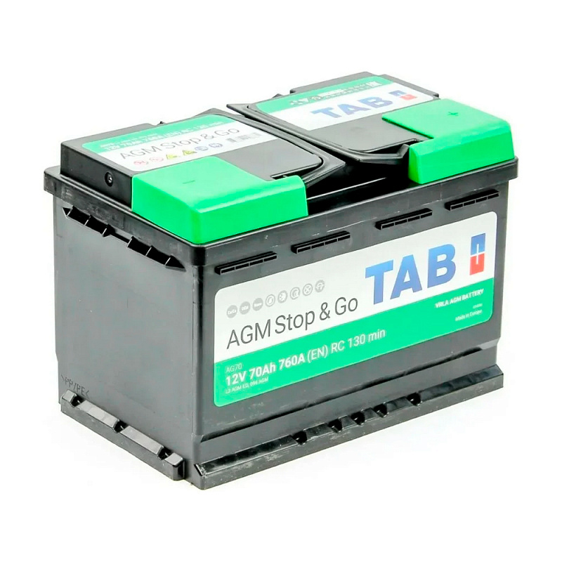 Автомобильный аккумулятор TAB AGM STOP&GO 70 обр (L3.0) производится в Словении с учётом всех особенностей европейских автомобилей. Его конструкция обеспечивает эффективное взаимодействие с системой рекуперации энергии торможения, для чего аккумулятор обладает высокой скоростью приёма заряда. Это позволяет быстро накапливать энергию, возвращаемую при торможении. Безопасность и долговечность автомобильного аккумулятора TAB AGM STOP&GO 70 обр (L3.0) повышены за счёт очень низкого расхода воды вследствие внутренней рекомбинации кислорода, устойчивости к вибрации и полного отсутствия утечки электролита даже в случае аварии. Конструкция с прикреплением пластин с обеих сторон улучшает коррозионную стойкость и обеспечивает более долгий срок службы. Дополнительные преимущества TAB AGM STOP&GO 70 обр (L3.0) — отсутствие расслоения кислоты, как в залитых аккумуляторах, и взрывобезопасность за счёт минимального количества выделяемых газов.