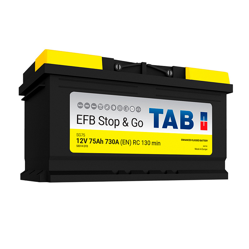 Авто аккумулятор TAB EFB STOP&GO 75 обр (LB4.0, низк) (12V / 75Ah / 730CCA)