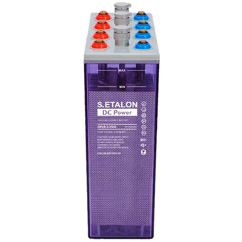 Промышленный малообслуживаемый аккумулятор с жидким электролитом S.ETALON 2-2500 производится напряжением 2 В и ёмкостью 2500 Ач. Трубчатые положительные панцирные пластины обеспечивают высокую надёжность батареи и длительный срок службы: более 20 лет или 2000+ циклов при DoD 60%. Доливать воду требуется раз в несколько лет, за уровнем электролита позволяет следить прозрачный корпус из прочного SAN-пластика. S.ETALON 2-2500 предназначен для эксплуатации при экстремальных условиях: от -25 до +65 °C. Батарея обладает низким саморазрядом.