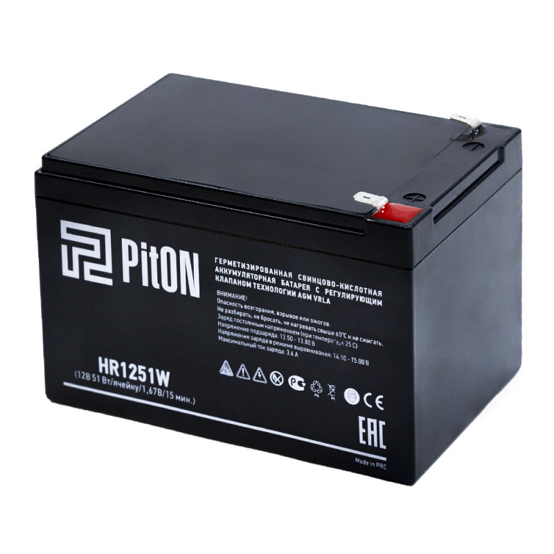 Подробное описание аккумулятора PitON HRL 1251W Руководство по эксплуатации Декларация о соответствии Декларация соотвествия Протокол испытанийОтзывы пользователей