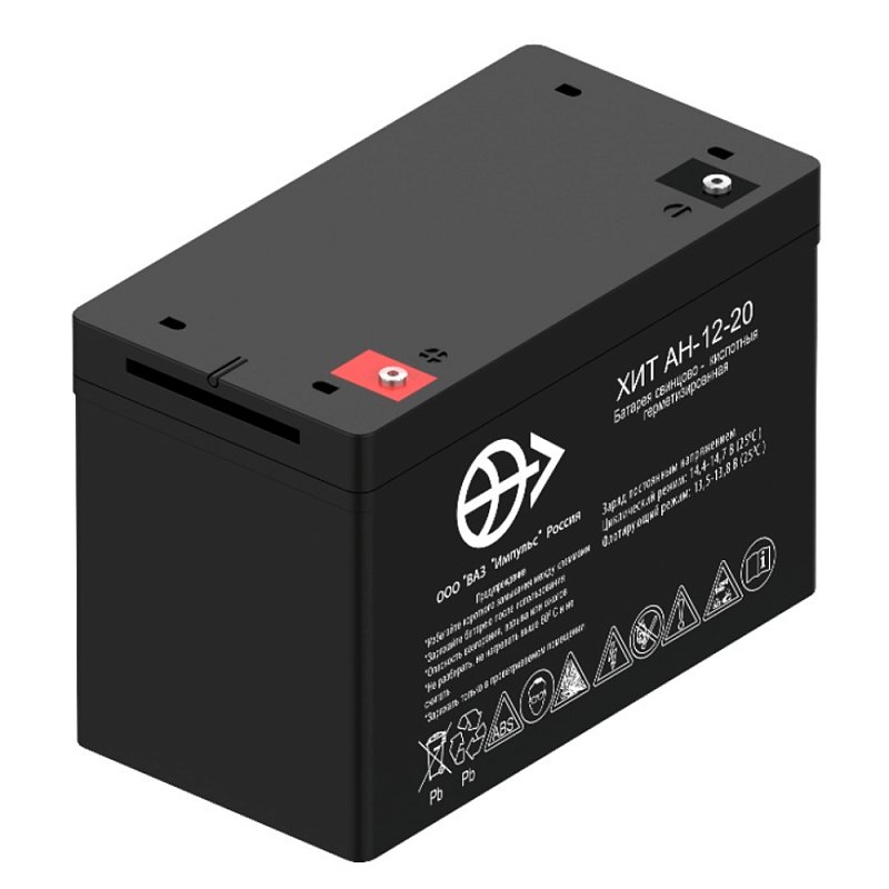 Герметизированный необслуживаемый свинцово-кислотный аккумулятор ВАЗ Импульс АН 12-20 (12 В; 17 Ач) производится по техническим условиям ЖТПИ.563415.001 ТУ, что обеспечивает повышенную надёжность, проверенную испытаниями и подходит для ответственных узлов. Батарея изготовлена по технологии AGM: микропористый стекловолоконный сепаратор удерживает кислотный раствор. Это положительно сказывается на сроке службы акб: циклический ресурс по ГОСТ Р МЭК 60896-21 составляет 400 циклов или 15 лет в буферном режиме. ВАЗ Импульс АН 12-20 не требует обслуживания, под давлением рекомбинируется более 98% газов.