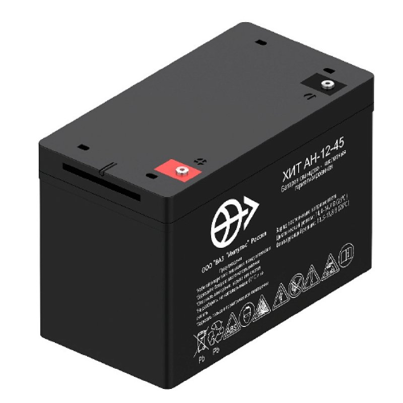 Герметизированный необслуживаемый свинцово-кислотный аккумулятор ВАЗ Импульс АН 12-45 (12 В; 45 Ач) производится по техническим условиям ЖТПИ.563415.001 ТУ, что обеспечивает повышенную надёжность, проверенную испытаниями и подходит для ответственных узлов. Батарея изготовлена по технологии AGM: микропористый стекловолоконный сепаратор удерживает кислотный раствор. Это положительно сказывается на сроке службы акб: циклический ресурс по ГОСТ Р МЭК 60896-21 составляет 400 циклов или 15 лет в буферном режиме. ВАЗ Импульс АН 12-45 не требует обслуживания, под давлением рекомбинируется более 98% газов.