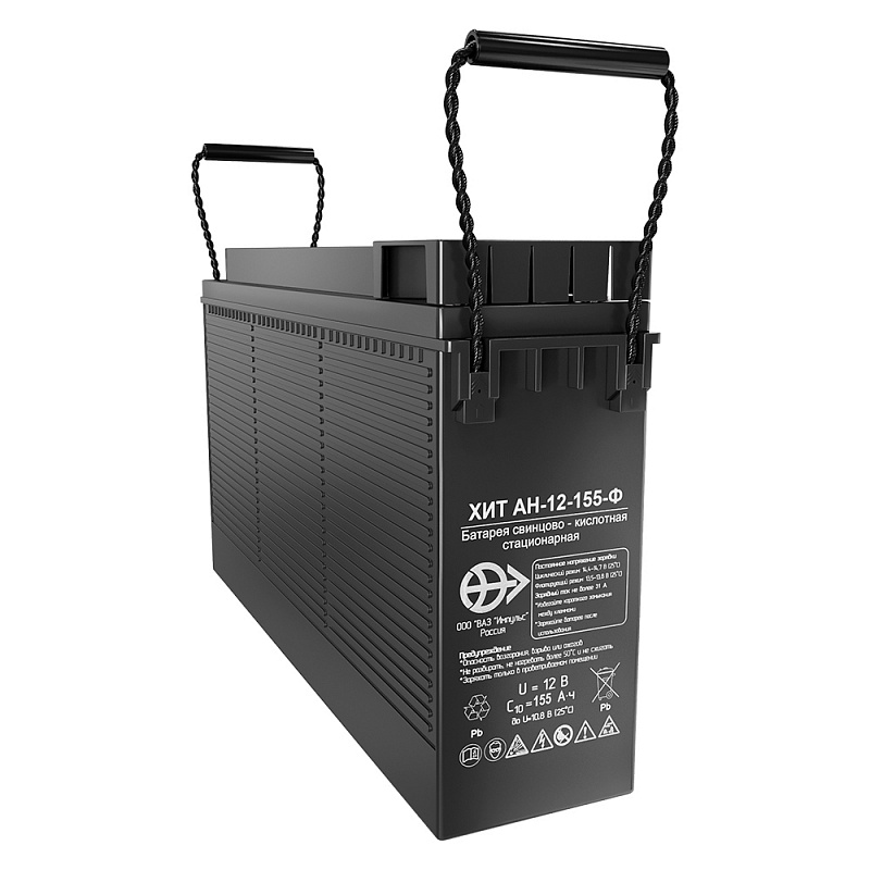 Фронт-терминальный свинцово-кислотный аккумулятор ВАЗ Импульс ХИТ АН-Ф 12-155-Ф производится напряжением 12 В и ёмкостью 155 Ач. Он соответствует техническим условиями ТУ ЖТПИ .563415.001ТУ. Батарея прошла все необходимые испытания и соответствует высоким стандартам батарей премиум класса. Технология AGM представляет из себя жидкий электролит, удерживаемый неподвижно стекловолоконными сепараторами. ВАЗ Импульс ХИТ АН-Ф 12-155-Ф надёжно герметизирован, не требует обслуживания на протяжении всего срока службы (400 циклов или 10-15 лет в буферном режиме), газы рекомбинируют внутри корпуса, а избытки сбрасываются в атмосферу через односторонний клапан избыточного давления.