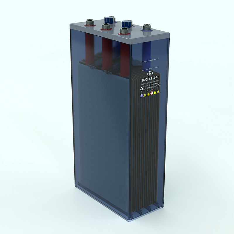 Промышленный аккумулятор ВАЗ Импульс 16 OPzS 2000 (2 В; 2000 Ач) выпускается в прозрачном корпусе с жидким электролитом. Такое решение позволяет отслеживать уровень кислотного раствора и по необходимости доливать дистиллированную воду. Благодаря этому батарея обладает высоким сроком эксплуатации: до 25 лет. Обслуживание производится раз в 3-5 лет. Положительные электроды панцирного типа обеспечивают повышенную надёжность и максимально возможный ресурс. Система уплотнения выводов исключает протекание электролита и защищает борны от коррозии. Отрицательные электроды ВАЗ Импульс 16 OPzS 2000 намазного типа с токоотводами из малосурьмянистого сплава.