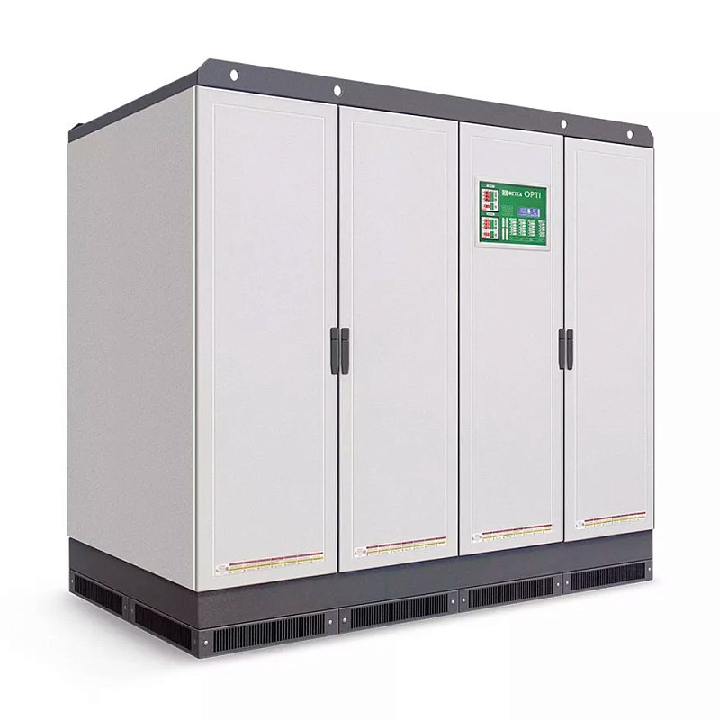 Ortea Orion Plus 400-15/35 это трёхфазный промышленный стабилизатор напряжения итальянского производства мощностью 400 кВА, выпускаемый в напольном форм-факторе. Он адаптирован под работу с особенностями промышленных электросетей и может регулировать напряжение независимо по каждой фазе, что позволяет питать как трёхфазное, так и однофазное оборудование. Ortea Orion Plus 400-15/35 регулирует входное и выходное напряжение с высочайшей точностью (0.5%), делая это бесступенчато под двойным микропроцессорным управлением. Трёхфазный стабилизатор напряжения производится в модульных шкафах, устойчивых к влиянию окружающей среды (IP21) и механических воздействий, его можно эксплуатировать в широком температурном диапазоне: от -25°C до +45°C. На передней панели Ortea Orion Plus 400-15/35 расположен контрольно-информационный блок, он представляет собой два многофункциональных мультиметра и светодиодные индикаторы с аварийными сигналами.