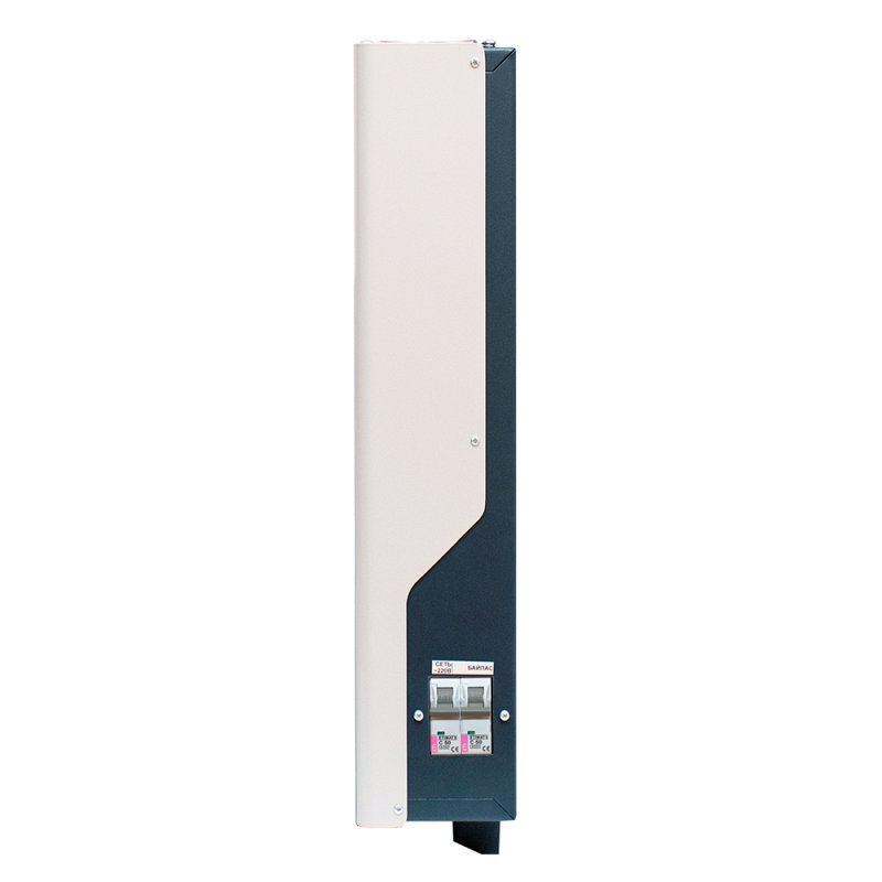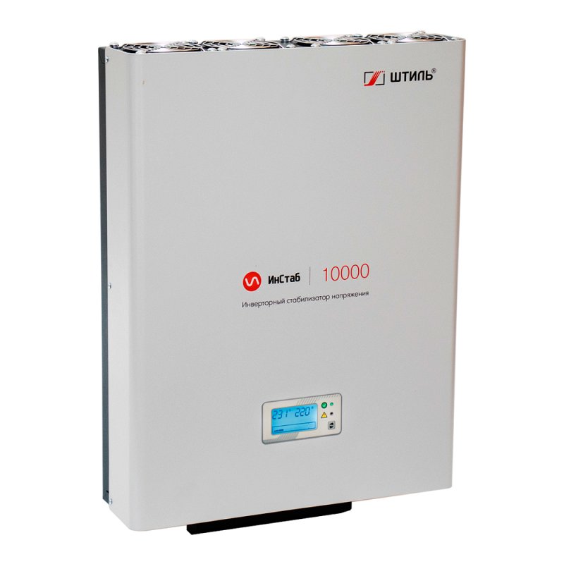 Однофазный (1-1) настенный инверторный стабилизатор напряжения Штиль IS10000 производится в России мощностью 10 кВА / 9 кВт. Он подходит для обеспечения стабильного электропитания такого оборудования, как: системы ГВС и водоснабжения, компьютерной техники, телевизоров и аудио-видео аппаратуры, холодильников, электроинструментов и охранных систем. Штиль IS10000 разработан с учётом специфики российских электрических сетей и полностью соответствует требованиям Таможенного союза (ЕАС). Топология двойного преобразования (Online) обеспечивает целый ряд преимуществ: мгновенная реакция на изменение параметров сети (0 мс), высокая точность коррекции напряжения и выдаёт на выходе идеальную синусоиду. При кратковременном отключении сети нагрузка обеспечивается ещё 200 мс.