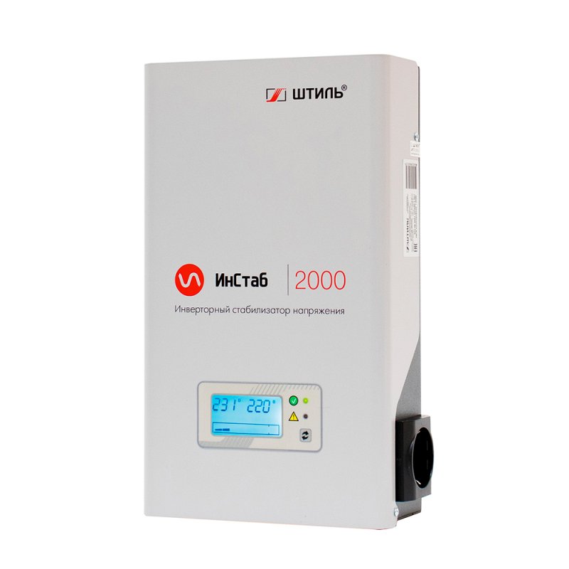 Однофазный (1-1) настенный инверторный стабилизатор напряжения Штиль IS2000 производится в России мощностью 2 кВА / 1.5 кВт. Он подходит для обеспечения стабильного электропитания такого оборудования, как: системы ГВС и водоснабжения, компьютерной техники, телевизоров и аудио-видео аппаратуры, холодильников, электроинструментов и охранных систем. Штиль IS2000 разработан с учётом специфики российских электрических сетей и полностью соответствует требованиям Таможенного союза (ЕАС). Топология двойного преобразования (Online) обеспечивает целый ряд преимуществ: мгновенная реакция на изменение параметров сети (0 мс), высокая точность коррекции напряжения и выдаёт на выходе идеальную синусоиду. При кратковременном отключении сети нагрузка обеспечивается ещё 200 мс.