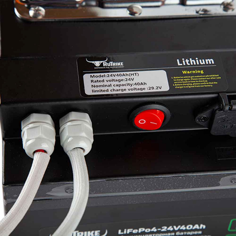 Тяговый аккумулятор RuTrike LiFePO4 24V40Ah (50A) поставляется со встроенным блоком управления (Battery Management System), он регулирует параметры заряда и разряда, следит за температурой и защищает АКБ. Литиевая батарея предназначена для высоких нагрузок и обладает повышенной токоотдачей. Она подходит для любой поломоечной и уборочной техники от любых производителей, погрузчиков, автомобилей и мотоциклов с электрическими двигателями. Корпус выполнен из металла и надёжно герметизирован, клеммы выполнены в виде силового разъёма.