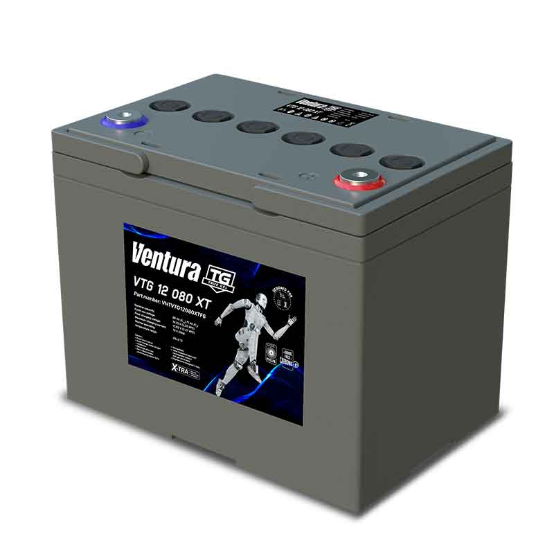 Премиальный тяговый аккумулятор Ventura VTG 12 080 XT напряжением 12 В ёмкостью 71 Ач производится по технологии TRUE GEL (TRUE GEL X-TRA) с применением улучшенной конструкции с усиленными решётками. Главная особенность серии — съёмные конусные выводы A-POL, позволяющие легко менять тип клемм на резьбу под болт. Электролит находится в загущенном желеобразном состоянии, что обеспечивает повышенную надёжность, устойчивость к вибрациям, перепадам температур и глубоким разрядам. Тяговая гелевая батарея Ventura VTG 12 080 XT подходит для работы как в буферном режиме, так и в циклическом, обеспечивая до 15 лет работы или 1500 циклов заряда-разряда. Аккумулятор надёжно герметизирован и защищён от проливания. На крышке ударопрочного корпуса располагаются высококлассные клапаны избыточного давления (VRLA), которые гарантируют безопасную работу и транспортировку в любом положении. Обслуживание на протяжении всего срока службы тягового гелевого акб не требуется. Благодаря низкому % саморазряда Ventura VTG 12 080 XT может храниться без подзарядки до 2 лет. Аккумуляторы серии VTG производятся на современном заводе в ОАЭ выходцами из компании Sonnenshein.