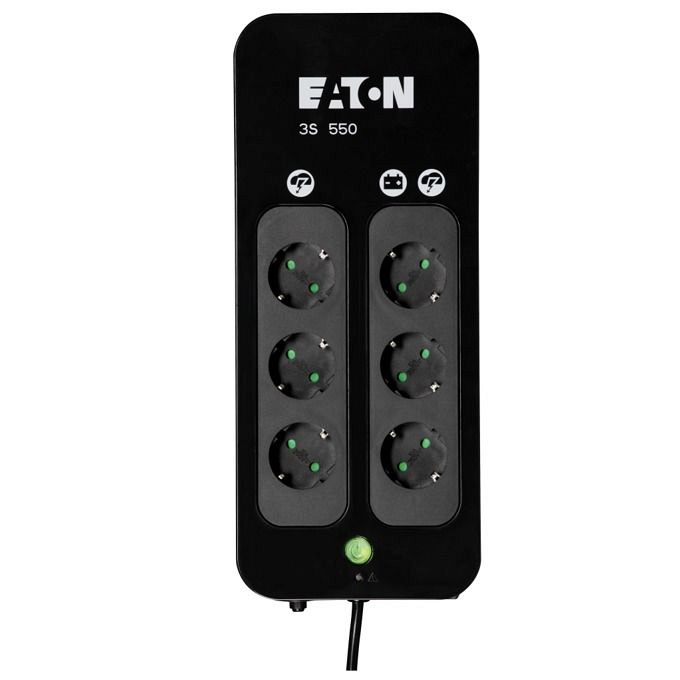 Компактный ИБП Eaton 3S 550 DIN класса Off-Line обеспечивает базовую защиту электропитания компьютеров, периферийных устройств и телефонных аппаратов. Устройство имеет розетки для подключения нагрузки (с резервированием и фильтрацией сетевых помех), что гарантирует бесперебойную работу оборудования.