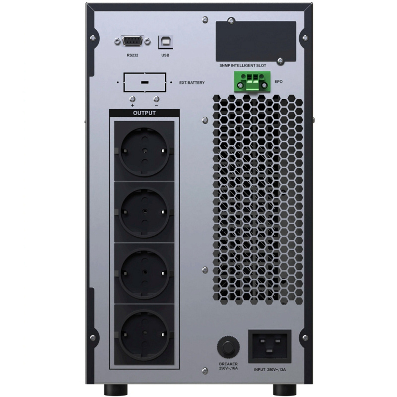 Однофазный ИБП Innova TA 2000 производится в напольном форм-факторе мощностью 2000 ВА / 2000 Вт по технологи онлайн. Топология двойного преобразования обеспечивает питаемое оборудование наилучшей защитой от любых неполадок сети: от коротких замыканий и скачков напряжения, вплоть до полного отключения сети. Источник бесперебойного питания Innova TA 2000 подходит для защиты компьютеров, периферийной вычислительной техники, мощных серверов, медицинского оборудования, систем хранения данных и другого чувствительного к качеству электропитания оборудования. Бесперебойник работает от внутренних свинцово-кислотных батарей. Для удобства настройки и отслеживания состояния ИБП на передней панели расположен ЖК дисплей, важную информацию дублирует светодиодная индикация и звуковая сигнализация. На задней панели Innova TA 2000 расположены Schuko розетки и порты RS-232, EPO, USB, SNMP.
