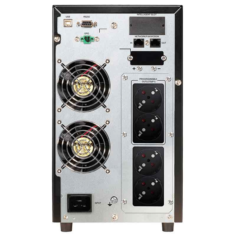 Однофазный Онлайн ИБП STARK COUNTRY 3000 online, 12А выпускается мощностью 3000 ВА \ 2400 Вт в напольном исполнении. Топология двойного преобразования обеспечивает высокое качество тока на выходе — форма выходного напряжения идеальный синус (защита от всех типов помех и проблем в питающей сети). Источник бесперебойного питания обладает высокой перегрузочной способностью: до 5 с при 150%. Внутренний микропроцессор отслеживает любые колебания сети и производит точную стабилизацию. При коротком замыкании STARK COUNTRY 3000 online, 12А автоматически сбрасывает его, а после самостоятельно перезапускается. Источник поставляется без аккумуляторных батарей - необходимо покупать отдельно. К источнику должно быть подключено 6 аккумулятора максимальной емкостью 240 Ач. Время автономной работы ИБП напрямую зависит от емкости выбранных аккумуляторов. Также возможно дистанционное управление и мониторинг устройства через подключение сетевой SNMP карты (см. раздел «Аксессуары»).