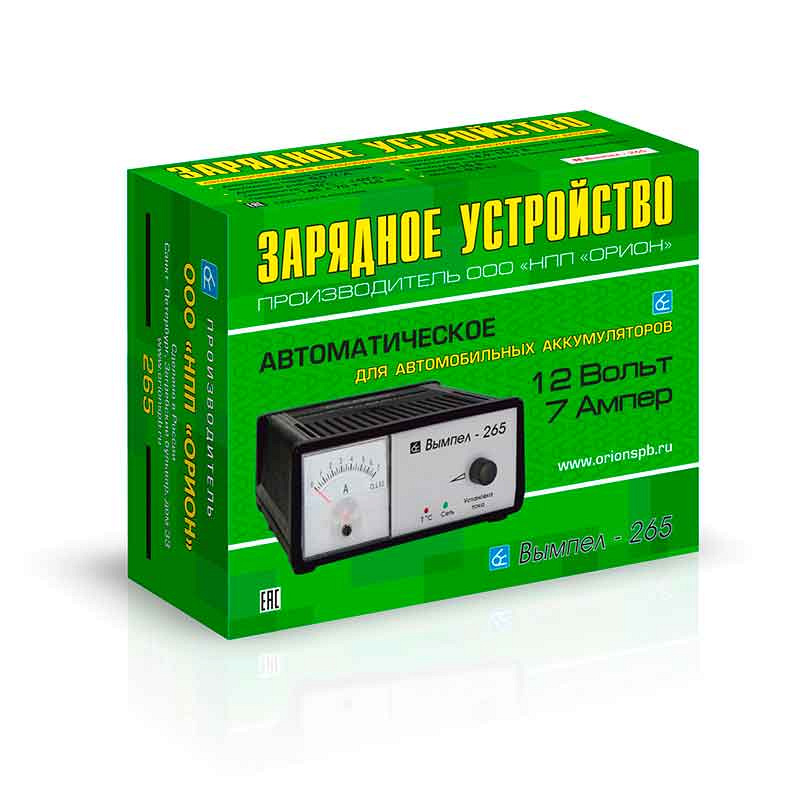 Автоматическое зарядное устройство Вымпел-265 предназначено для зарядки 12 В AGM, EFB, Ca\Ca и Ag аккумуляторов ёмкостью от 2 до 100 Ач. ЗУ использует алгоритм заряда по принципу плавного уменьшения тока и снабжено защитой от короткого замыкания, переполюсовки и перегрева. На передней панели расположен стрелочный амперметр для отслеживания состояния аккумуляторов. Регулировка тока и напряжения заряда на Вымпел-265 плавная. Во избежание перегрева внутри зарядного устройства установлено активное охлаждение в виде микровентилятора. Более подробную информацию о схеме подключения, режимах эксплуатации и характеристиках можно получить во вкладке «Документы».